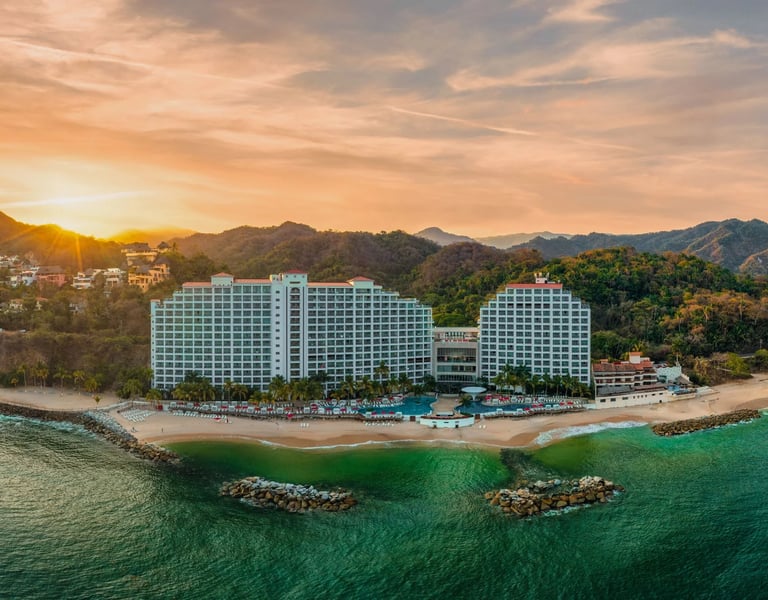 Relájate en un resort moderno con vista panorámica a la bahía de Puerto Vallarta, gastronomía de autor, spa premium y un ambiente tranquilo entre mar y montaña. Ideal para quienes buscan descanso, servicio de alta calidad y una experiencia sofisticada frente al océano.
